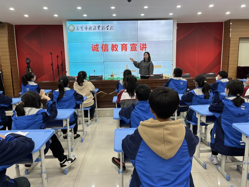 在诚信教育中,学校把诚信教育和基础道德教育结合起来,并结合实际情况,创造性地开展活动。学校以全体学生为对象,以诚信宣传为手段,以诚信教育为载体,通过LED屏宣传、诚信教育宣讲、文明大讲堂、诚信考试倡议等多种形式,积极开展诚信宣传教育活动。同时围绕社会主义核心价值观和中国传统文化精髓,组织学生签署诚信承诺书,学习鲜活生动、富有强大感召力的诚信事迹和诚信模范。